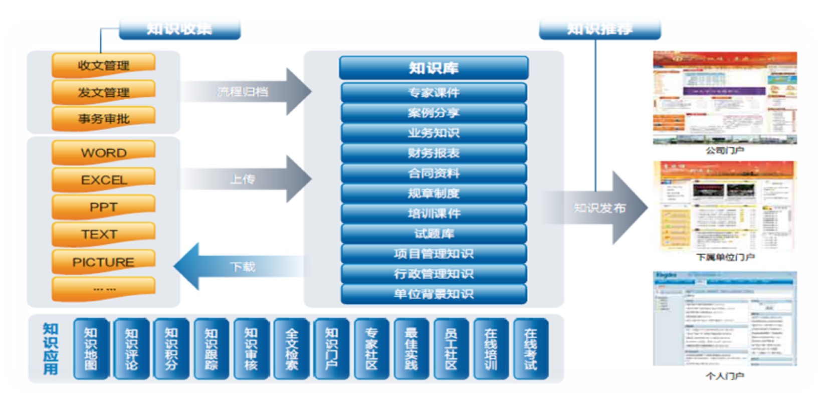 包括内容管理、文档管理、档案管理、知识搜索和协作社区的一体化方案,提升了企业和组织知识管理的水平,提高了知识工作者分享协作的效率。通过实现知识与企业的业务、流程的结合,盘活知识资产,实现知识资产的增值。