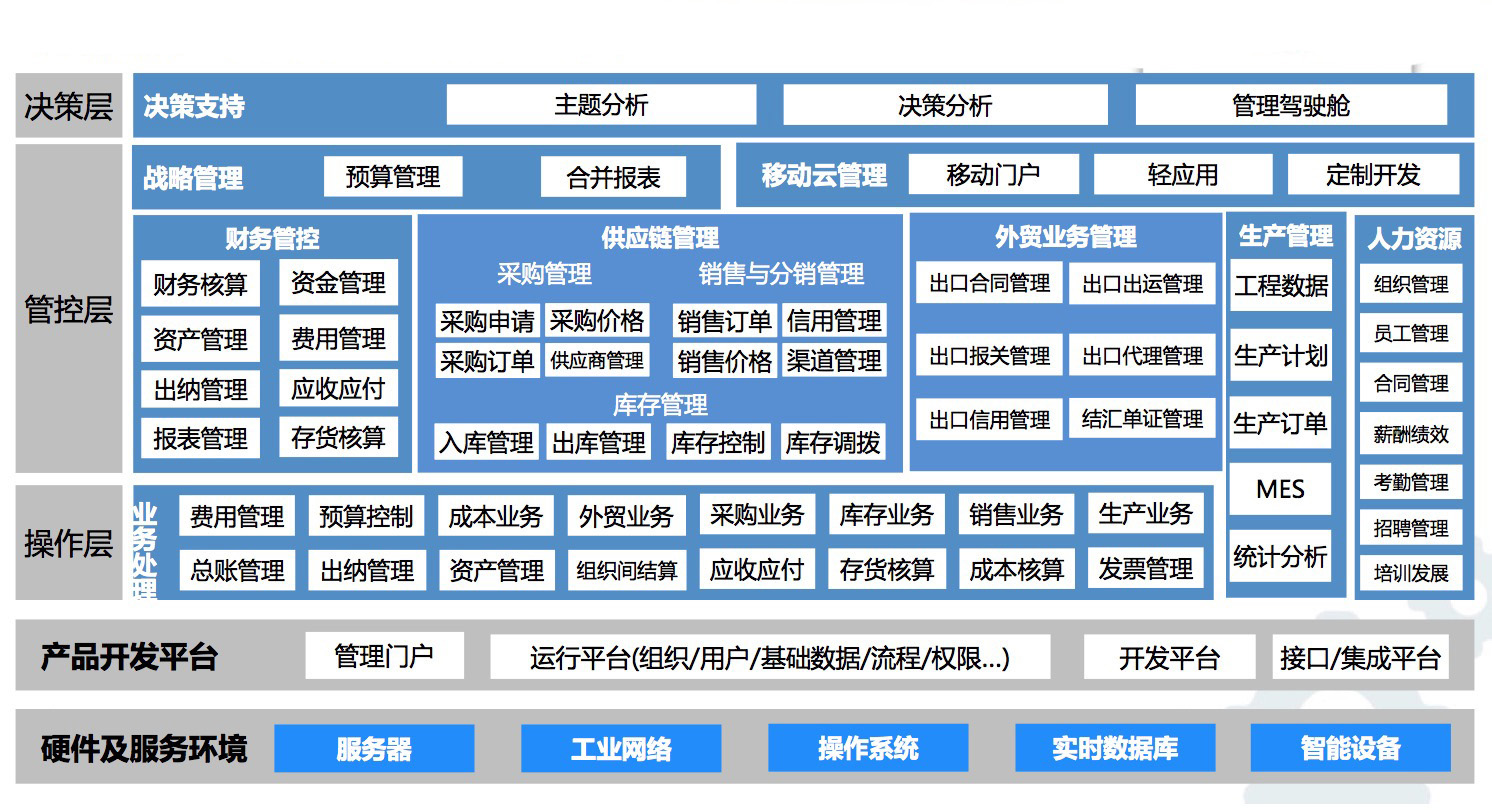 - 平台化:良好扩展性、国际化、BPM、多组织集团化