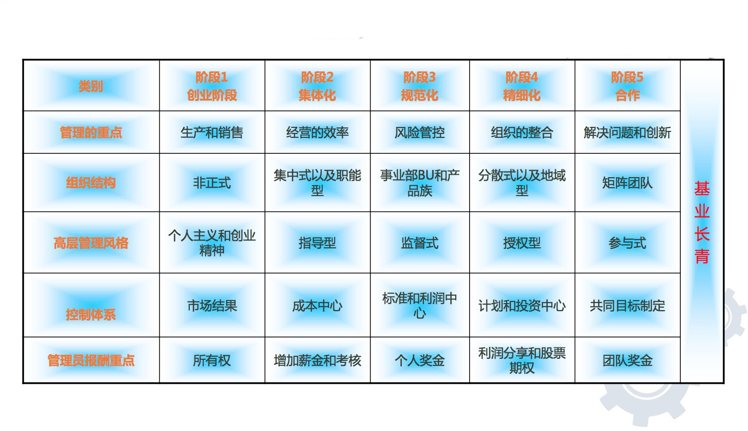公司在不同的发展阶段经营管理的重点不同,市场也在不断的变化,所以管理软件也需要调整或者二次开发,支持公司的经营战略。公司在不同阶段管理侧重点如下图。