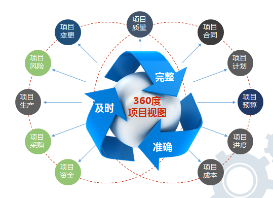 涵盖项目管理全过程、展现项目360度全方位视图、实现项目财务业务一体化、先进的项目型销售方法、全面的项目成本管控方案、精细的项目实施进度管控、统一的集团主数据管理、灵活的自主产品制造管理、先进的集群部署平台。